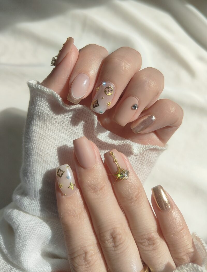 薬指と親指ベージュのカラーはイロジェルG6にマットコート
