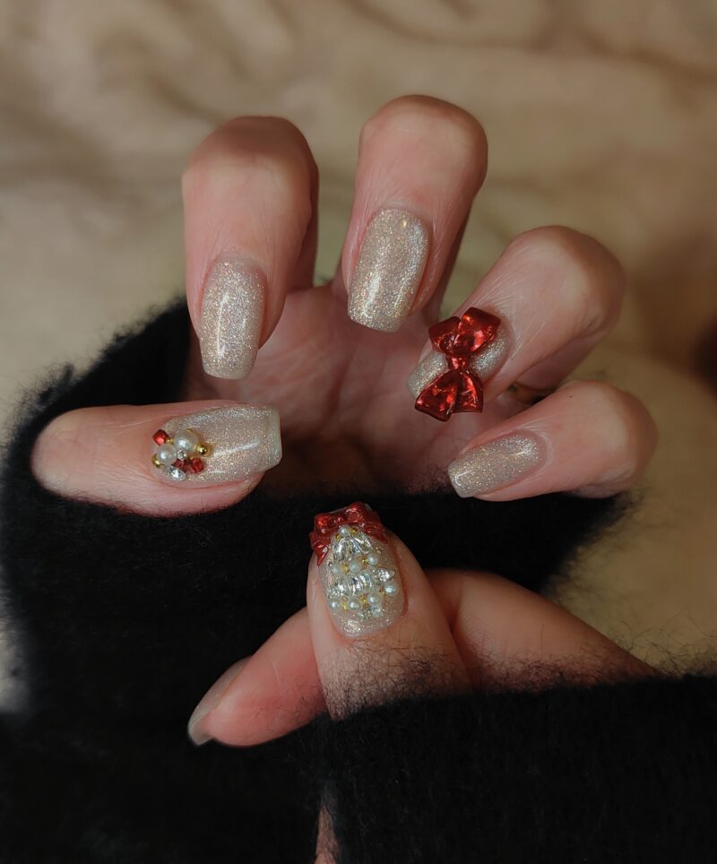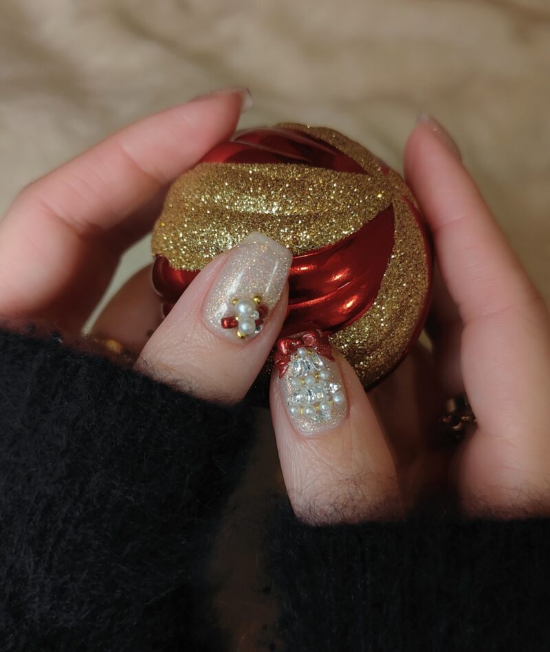 今回はクリスマスネイル❤️巨大リボンを付けました🎀