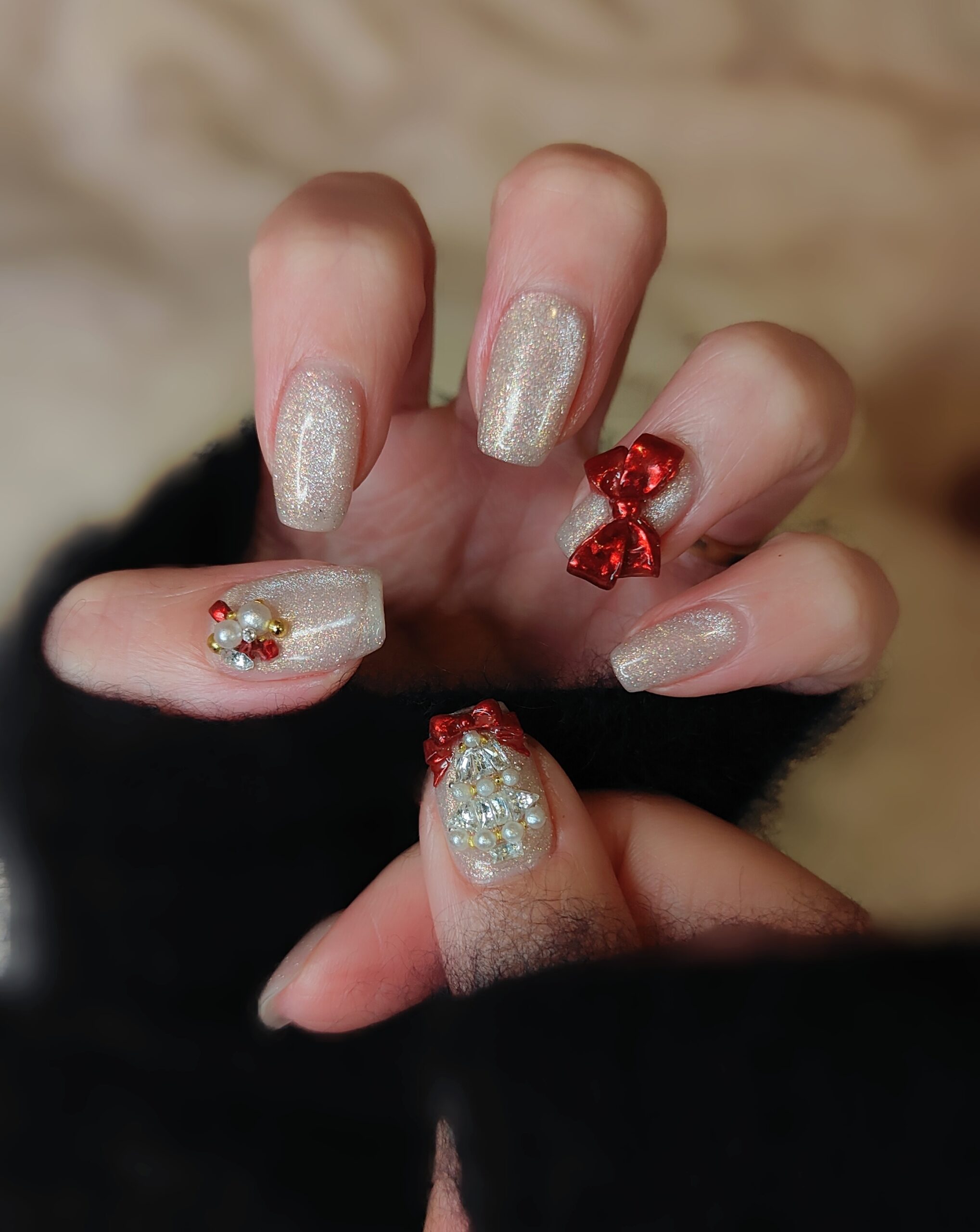 今回はクリスマスネイル❤️巨大リボンを付けました🎀